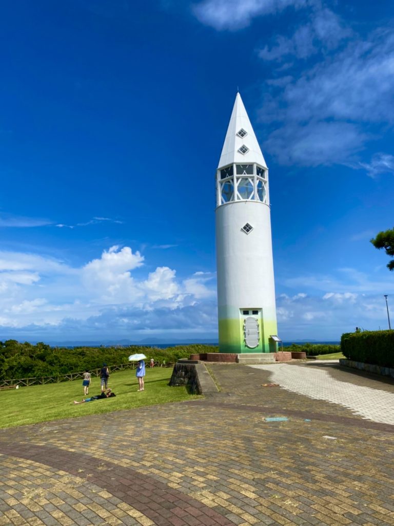 東端にある大根みたいな外観の安房崎灯台の先に階段があります。